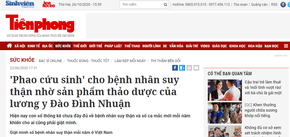 Lương y Đào Đình Nhuận được VTV1 phỏng vấn, Ông là người đầu tiên có thể điều trị Suy Thận, các bạn xem video ở dưới và link video của đài truyền hình nhé !